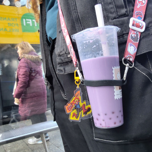 Tired of juggling objects when your drinking you iced coffe? Tired of only having one hand when your trying to shop and drink boba with your friends? Tired of being dehydrated because you put your cup down somewhere and can't find it?
