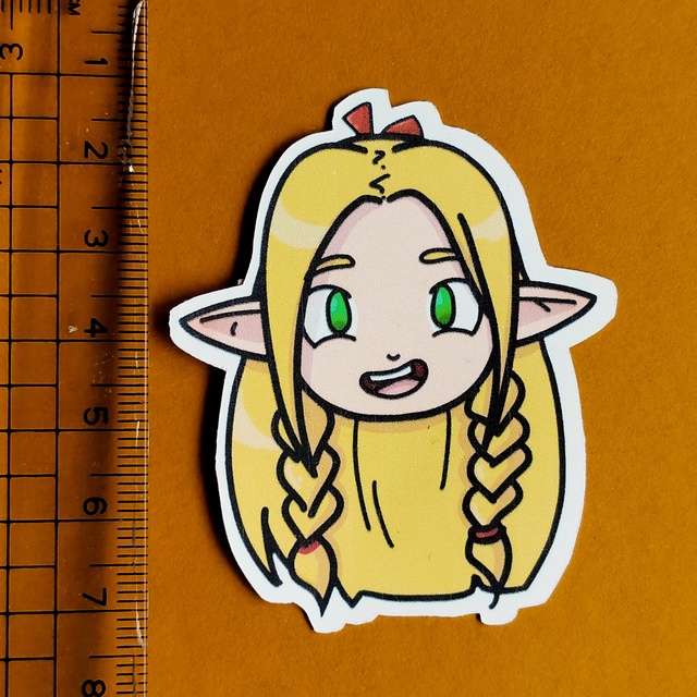 Show your love for Anime on any of your objects with these Waterproof Dungeon Meshi Stickers. I handcraft these lil guys in the hopes that you'll find others to nerd out with over animation <6